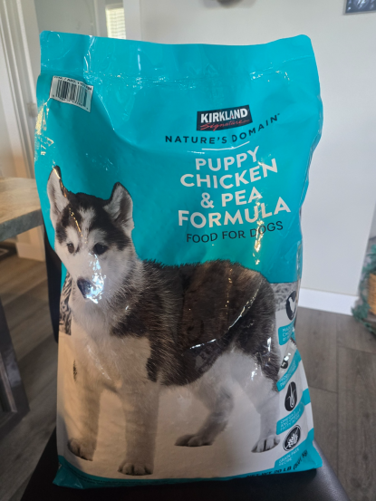 We use Costco puppy food ( our Vet says it's a good one). If you don't shop at Costco I will get you a 20# bag that will last long enough to switch to whatever you like. It is hard on their tummy's to switch too soon.